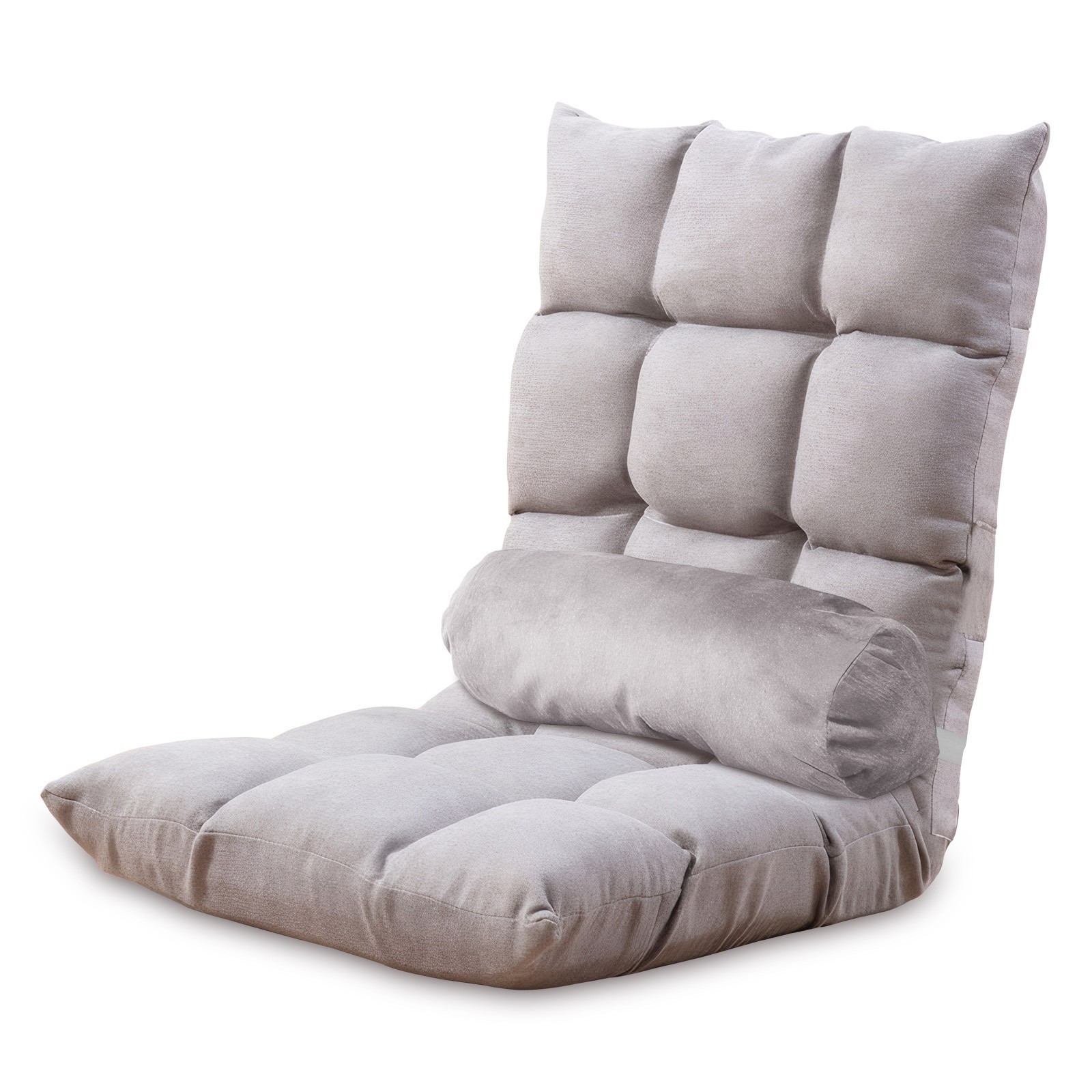 Topiky Folding Floor Chairs Video Gaming Chair, Folding Lazy Sofa Chair Lounge Chair with Back Support, Adjustable Chaise Lounge Indoor Padded Floor Seating Meditation Chair (Light Grey)