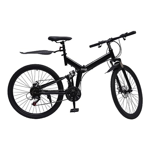 Levkitch Mens Mountain Folding Bike, 26 Inch Foldable Bicycle, 21 Speed Adjustable with Dual Disc Brakes Carbon Steel Adjustable Seat Height Can Support 100KG Men and Women (Black)