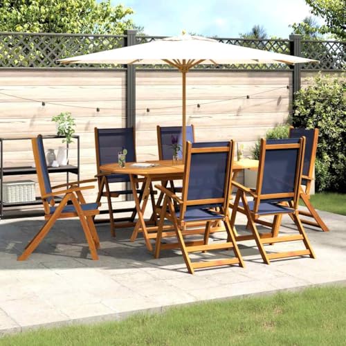 QUAHEAS 7-Piece Garden Dining Set Solid Acacia Wood Grey Painted Folding Patio Outdoor Furniture Set