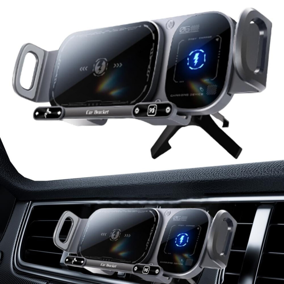 Auto Clamping Wireless Car Charger Mount with Double Coil, Compatible with Straight/Folding Phones & Tablets