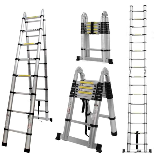 Telescopic Ladder Aluminium 5 m Telescopic Folding Step Ladder 16 Steps Maximum Load 150 kg (2.5 m + 2.5 m)