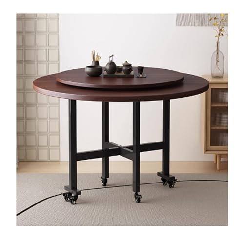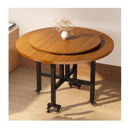YPIOUREN Folding Dining Table,Mobile Round Folding Dining Table, Mobile And Stable, Space Saving, For Living Room(Walnut B,120cm)
