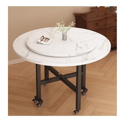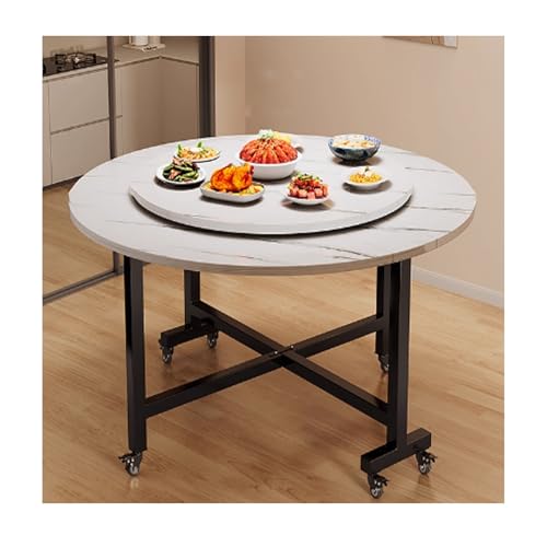 YPIOUREN Folding Dining Table,Mobile Round Folding Dining Table, Mobile And Stable, Space Saving, For Living Room(White B,120cm)