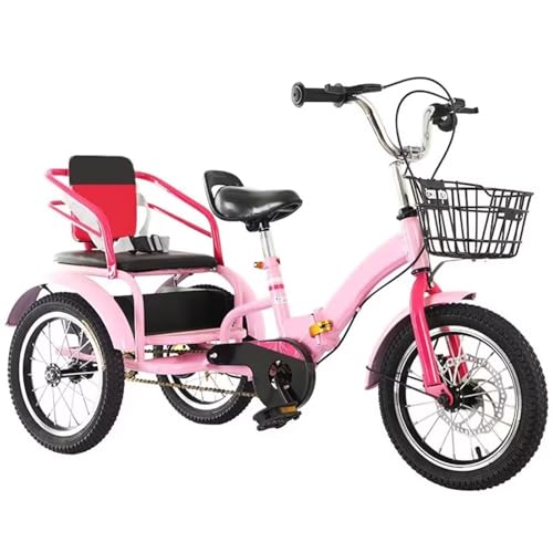 KXCVBNKLJ Trike 3 Wheel Cargo Bike, S Folding Trike 3 Wheels Rear Seat Dual Brakes Multicolor 16-20 inches(Pink,18inch)
