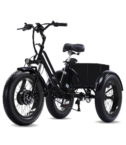 KAKIGO Electric Trikes for Adults UK,48V15Ah Electric Tricycle for Adults UK,20"x4"Fat Tire Folding E Trike,90KM Range,20KM/h,Front&Rear Basket(Black unfoldable version)