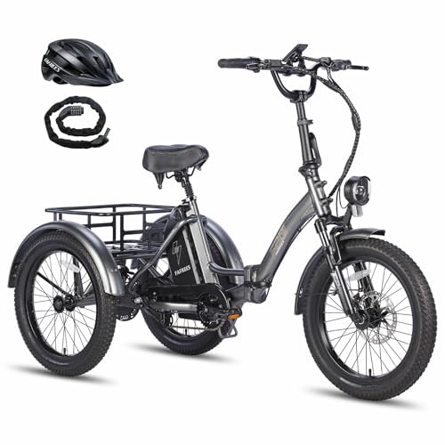 Fafrees F20 MATE Electric Tricycle Adults UK – Foldable 3 Wheel Electric Bike, Adult Electric Trike, Cargo Ebike, Fat Tire Folding Electric Trike for Men & Women (2 BASKETS, 18.2AH BATTERY)