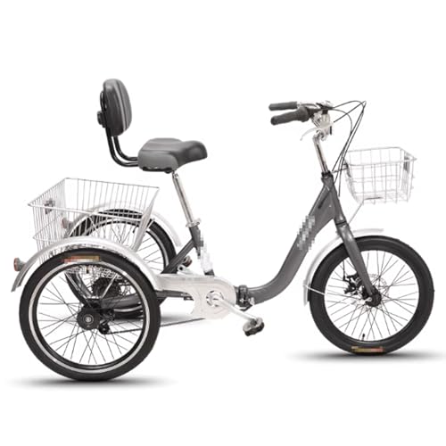 Tricycle for Adults,Folding Trike,3 Wheels Bicycle Bikes,with 7-Speed Gear,Parking Brake Handle,Large Basket for Women Men grey