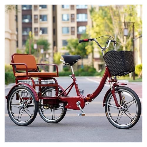 NDLHXKFRP Foldable 3-Wheel Bikes, Folding 2-Seat Trike For Adults Seniors 3 Wheel Hydraulic Front Fork Dual Brakes Multicolor(Wine Red)