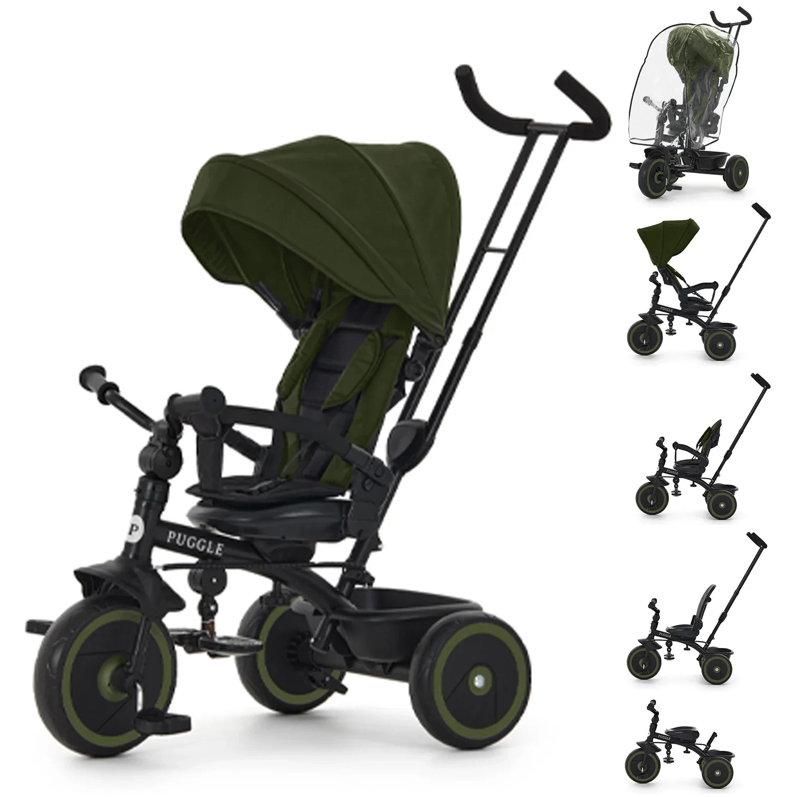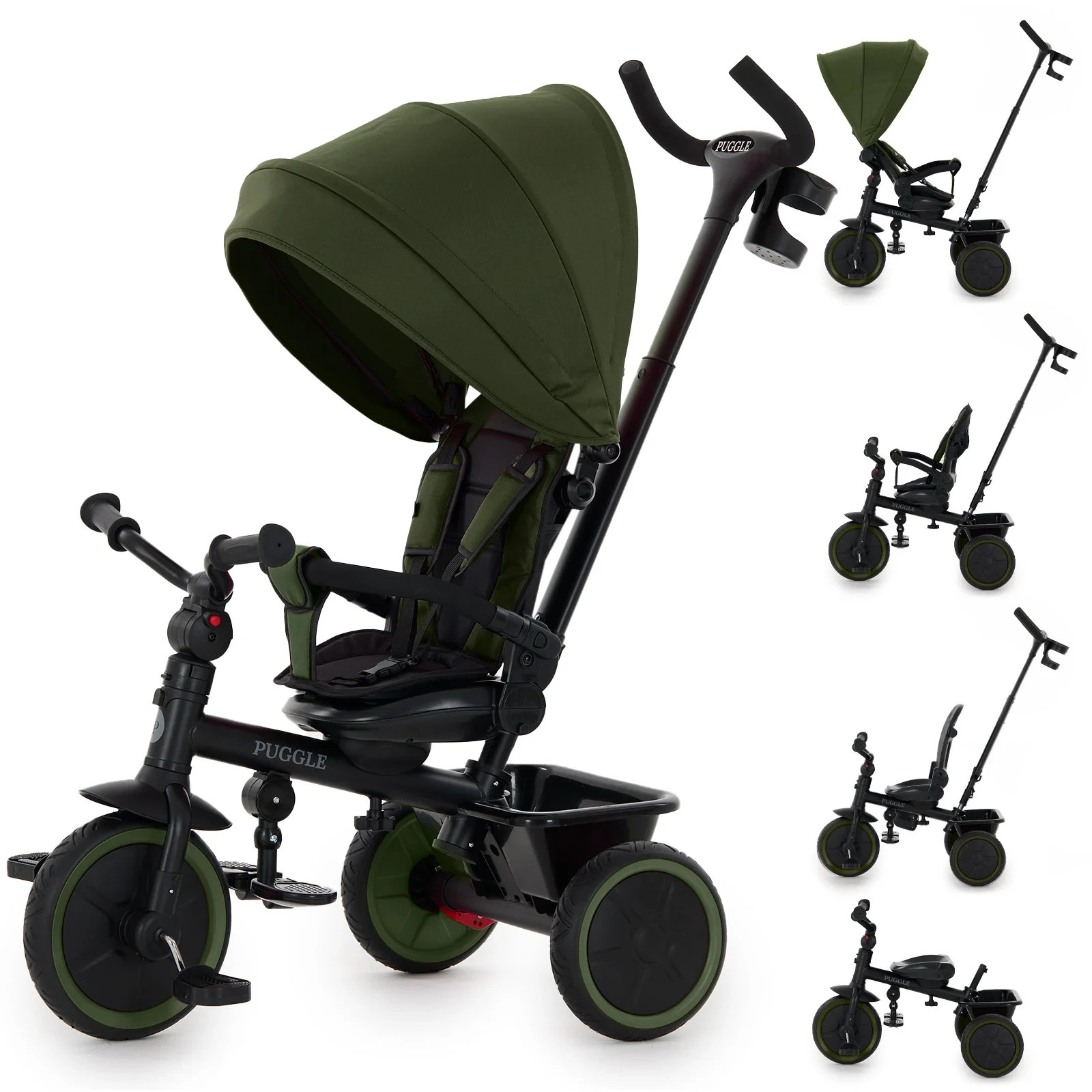 Puggle Active Spin 6-in-1 Convertible Folding Trike Green