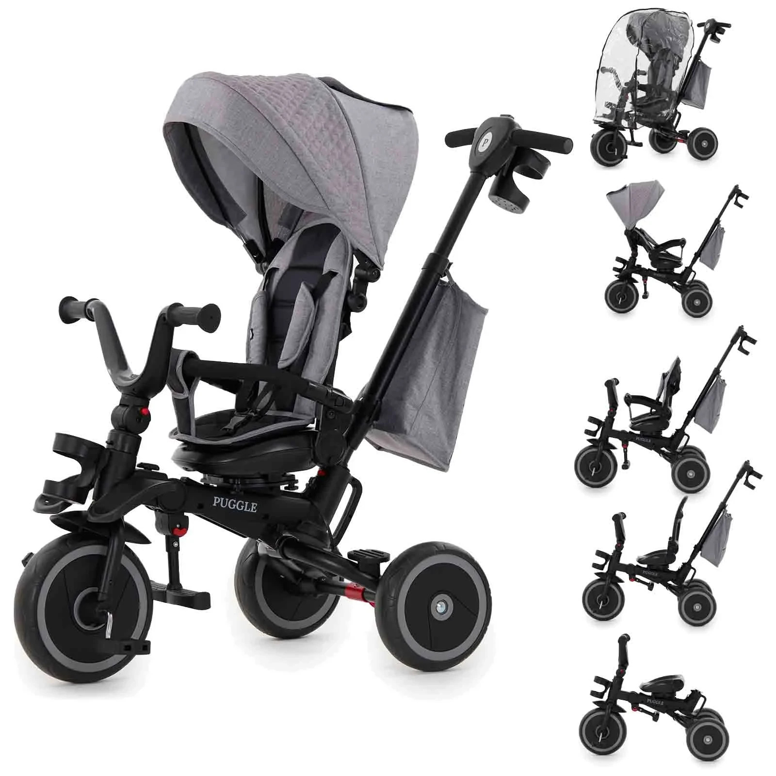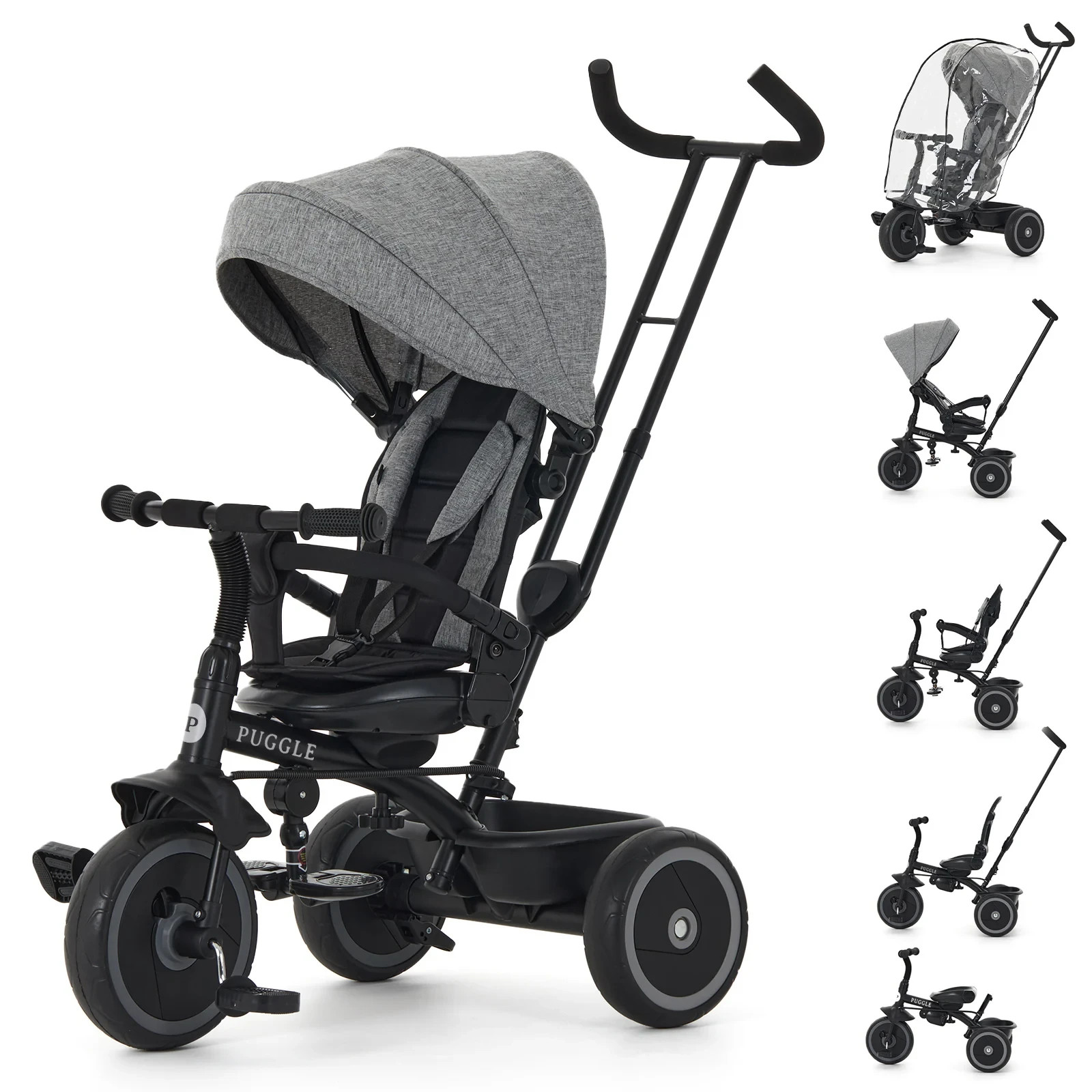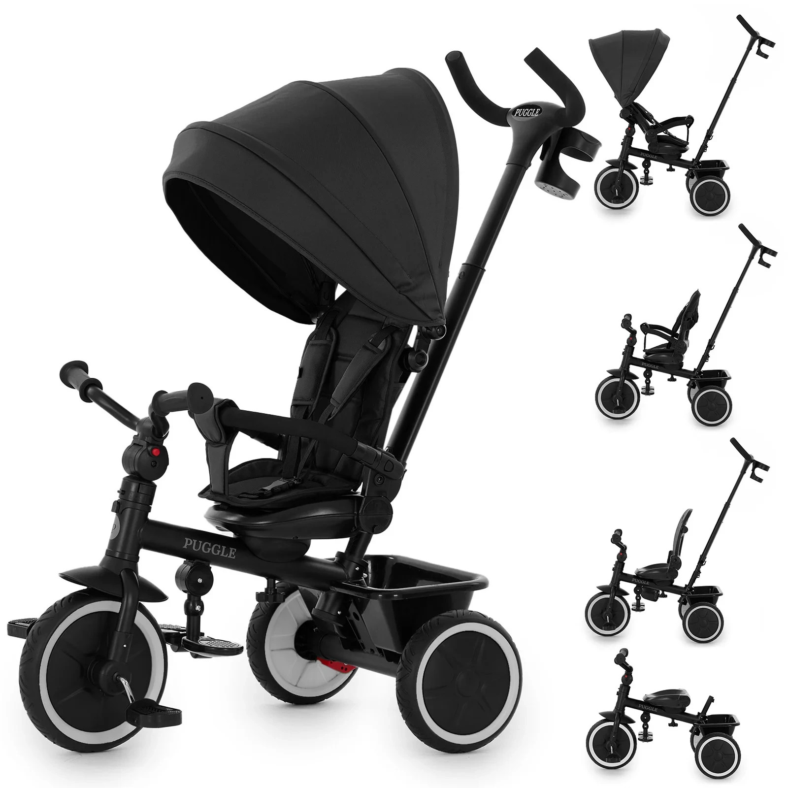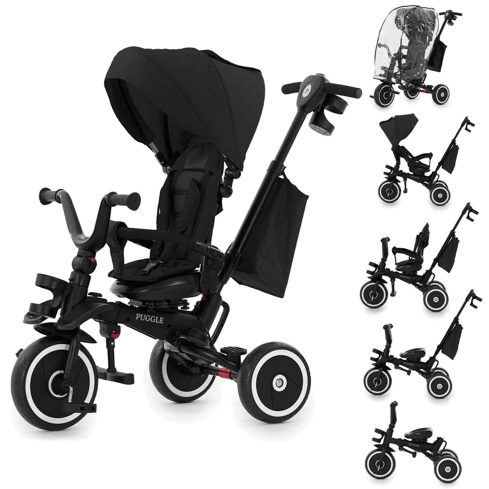 Puggle Active Spin 6-in-1 Convertible Folding Trike Black