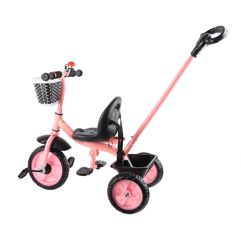 Pink Children Tricycle Balance Trike Folding Pedals Adjustable Push Handle Direc