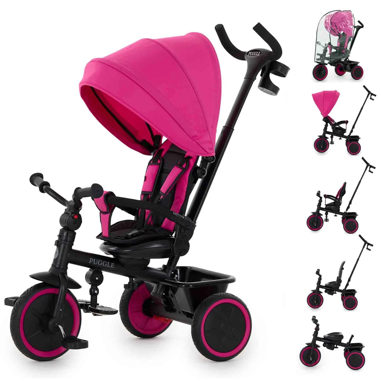 Easy Twist 6-in-1 Folding Trike with Raincover Rose Pink 9 Months-5 Yrs