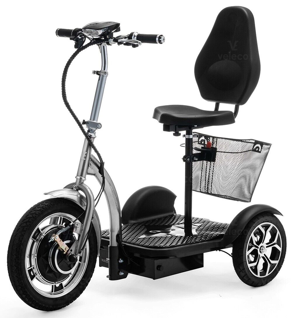 Folding 3 Wheel Electric Mobility Scooter Tricycle Trike Silver VELECO ZT16