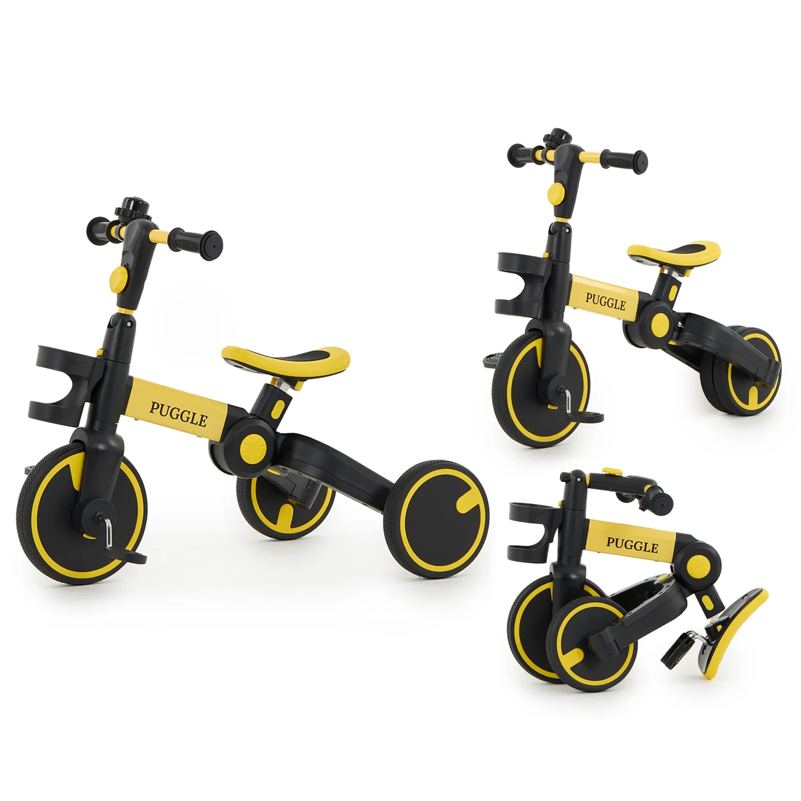Puggle 2-in-1 Folding Trike Balance Bike Yellow Convertible Kids Ride-On 2–5 Y