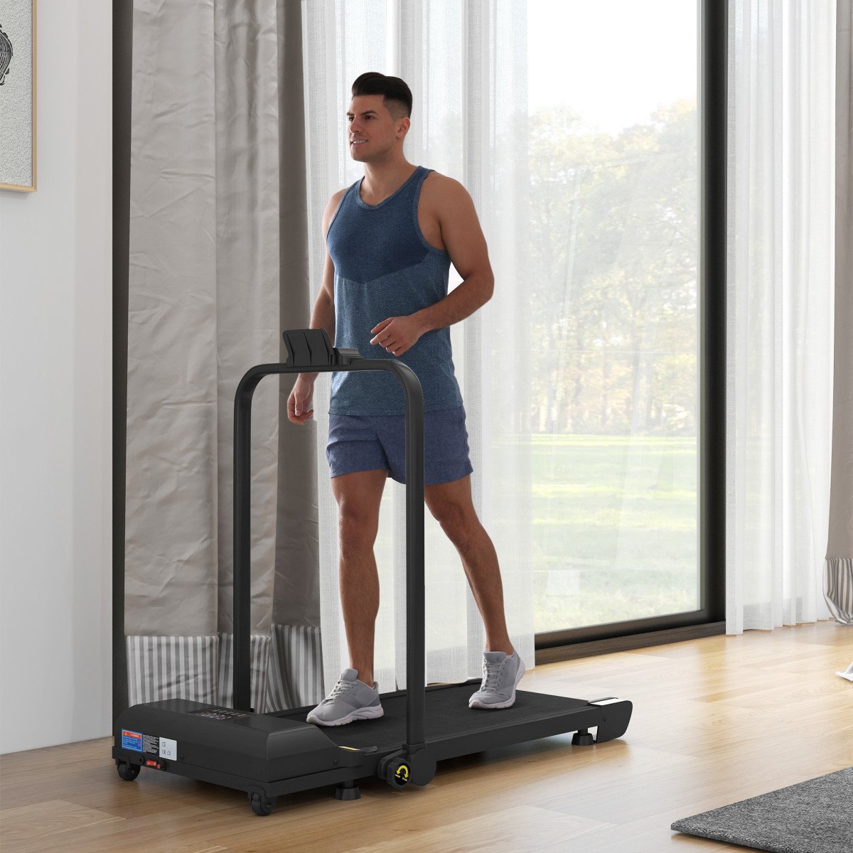 BIGZZIA Folding Walking Pad Treadmill,with Handrail,6KM/H,Black