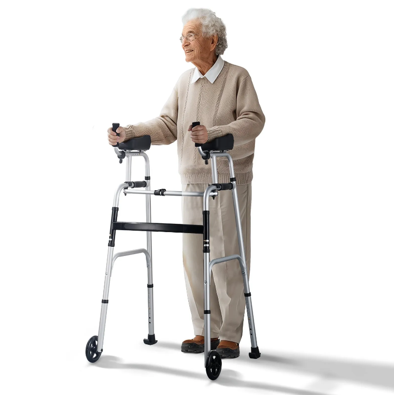 Uimoso Folding Walking Frame Armrest Pad 5" Solid Wheel Height Adjustable Walker
