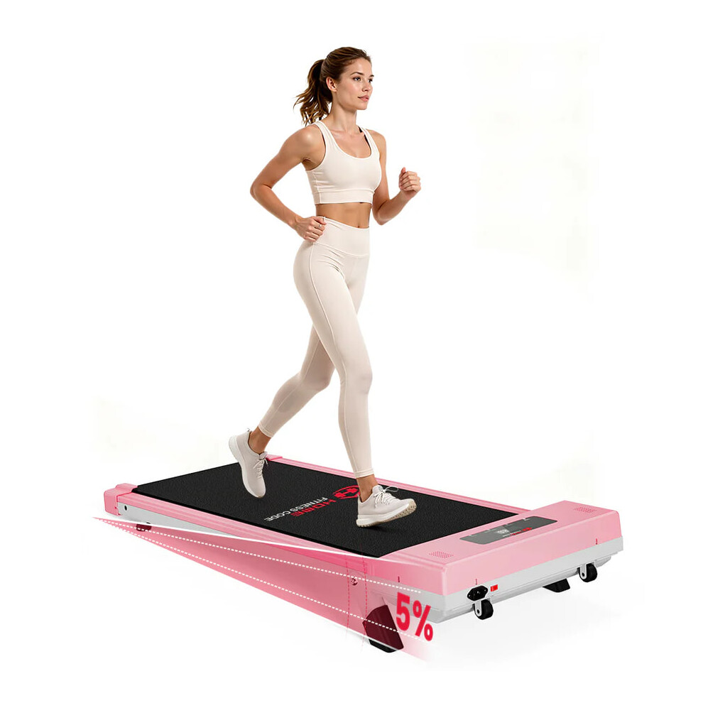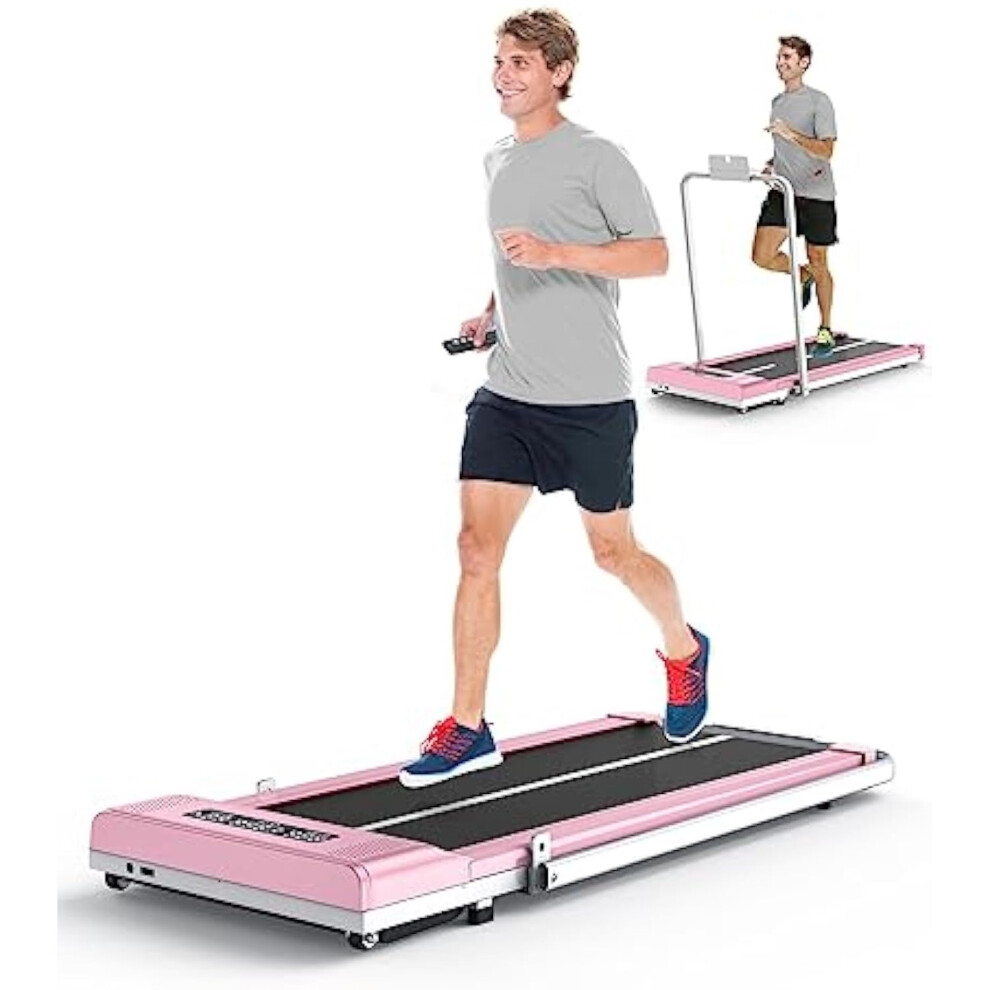 Under Desk Treadmill Incline Adjustable Foldable App Remote Control 4 in 1 Folding Walking Running Pad Machine Adjustable Speeds LED Display for Home or Office with Holder (PINK)
