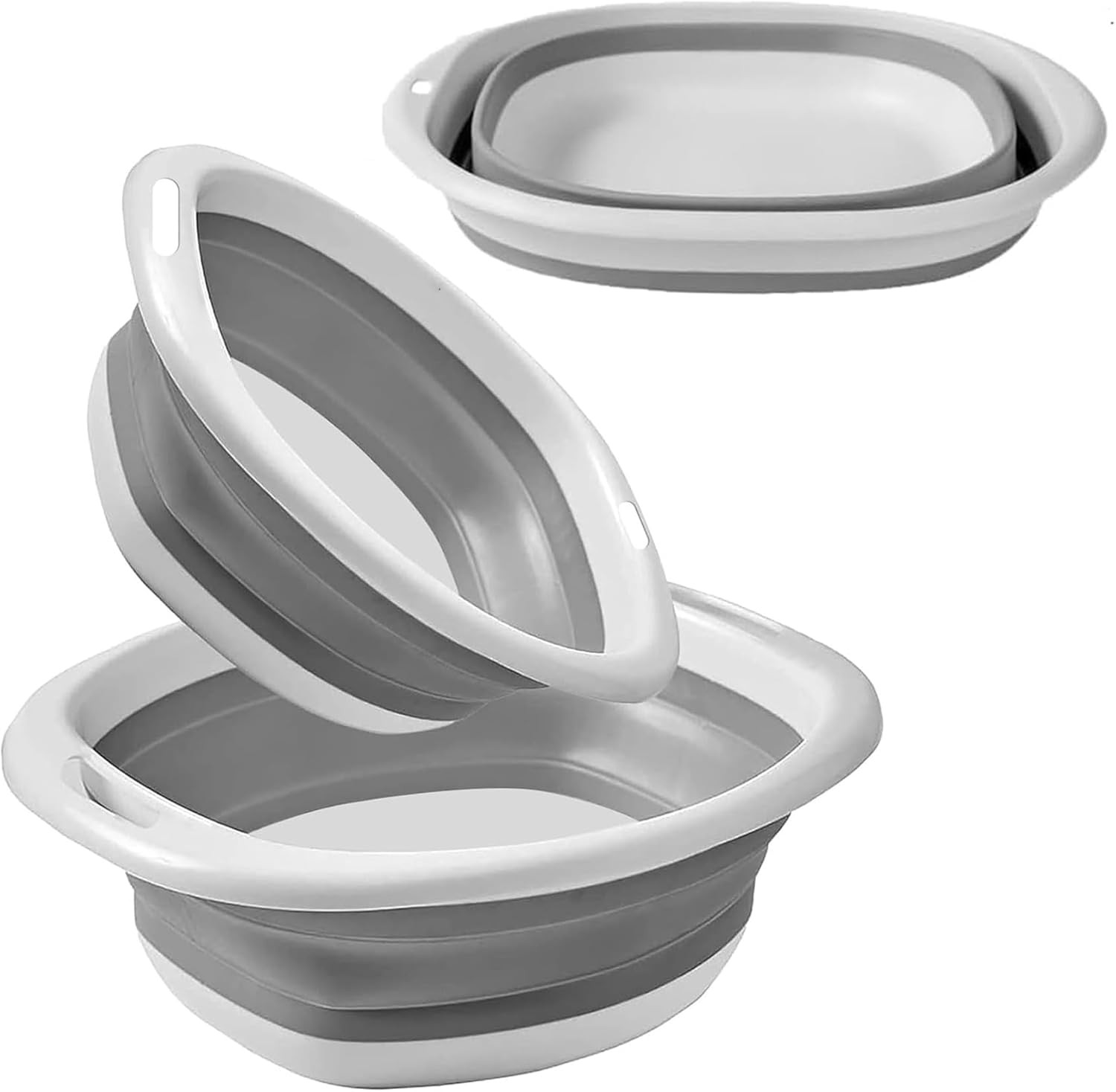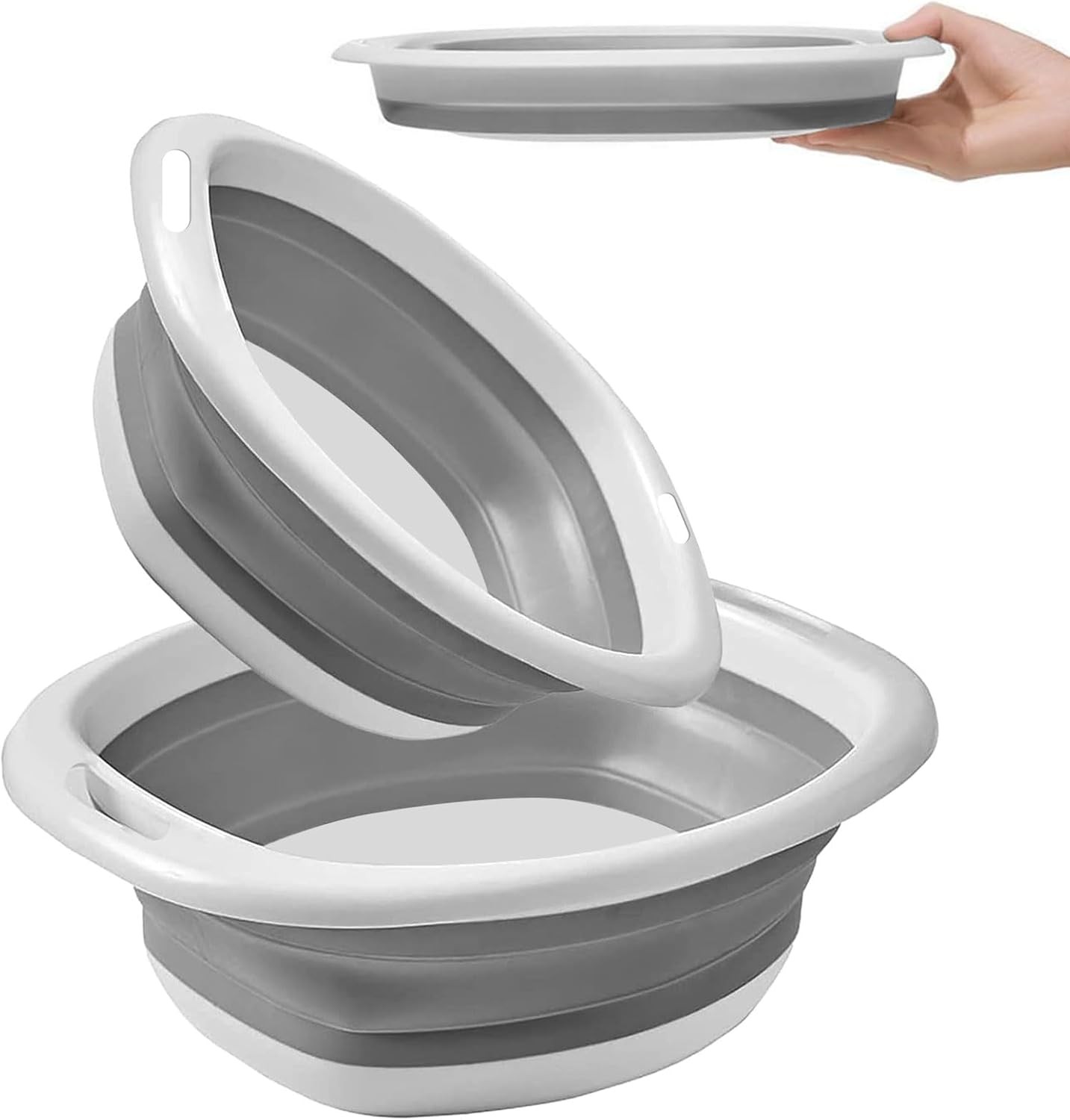 2 Piece Collapsible Washing Up Bowl, Portable Silicone Folding Hand Washing Bas