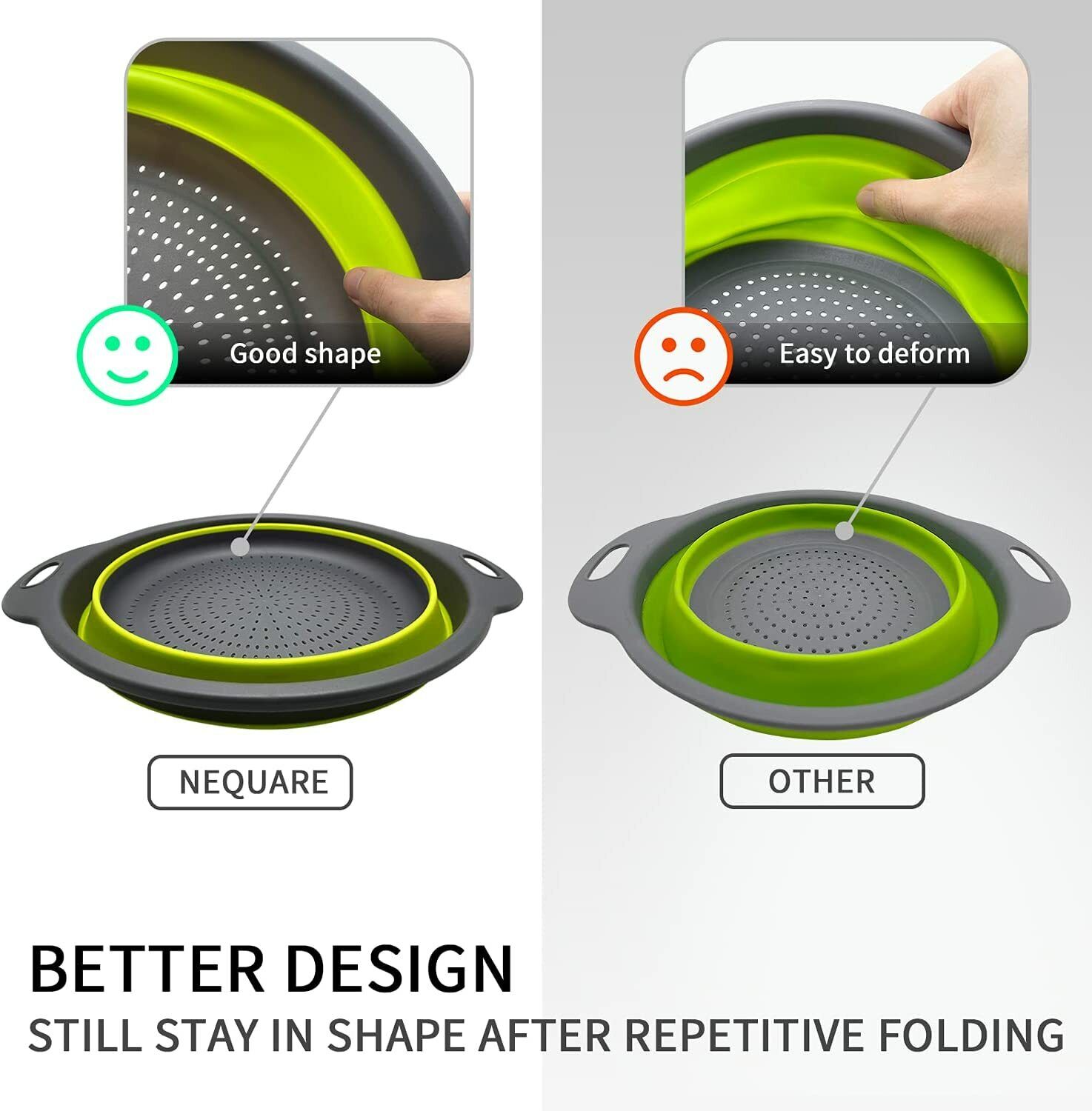 Collapsible 3 Pcs Folding Colander Washing Up Bowl Vegetable Draining Strainer