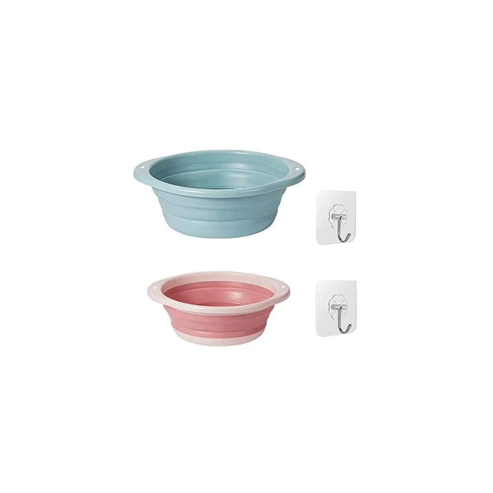 Zhailyn Folding Washbasin, 2Pcs Multi-Functional Round Washing Up Bowl, Silicone Collapsible Washbasin, Outdoor Portable Washing Basket, for Travel,