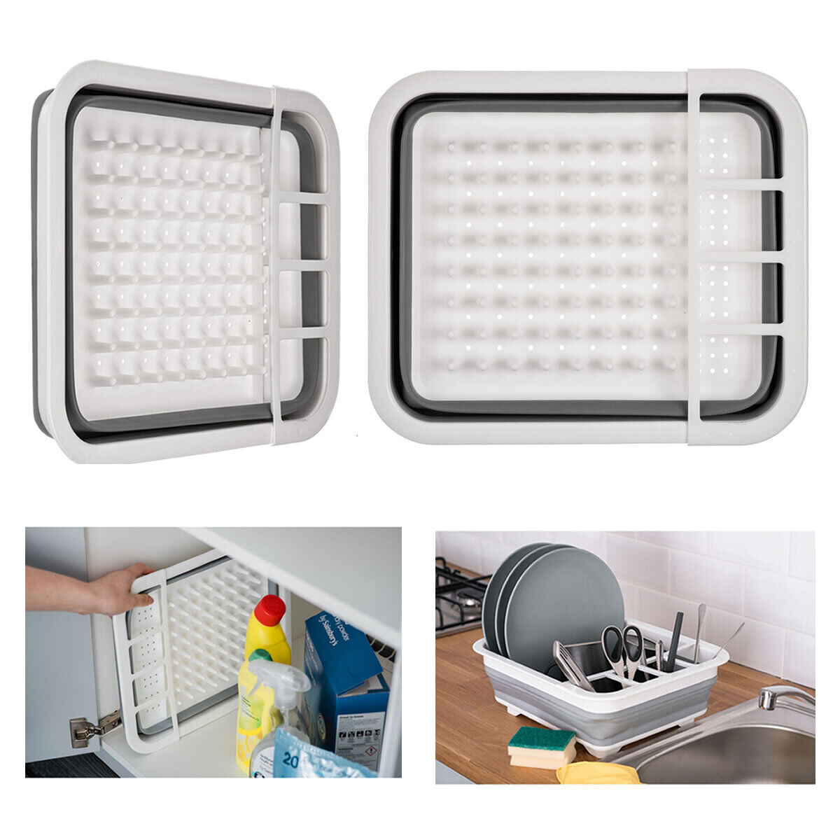 New Collapsible Washing Up Bowl Dish Drainer Draining Folding Water Reusable UK