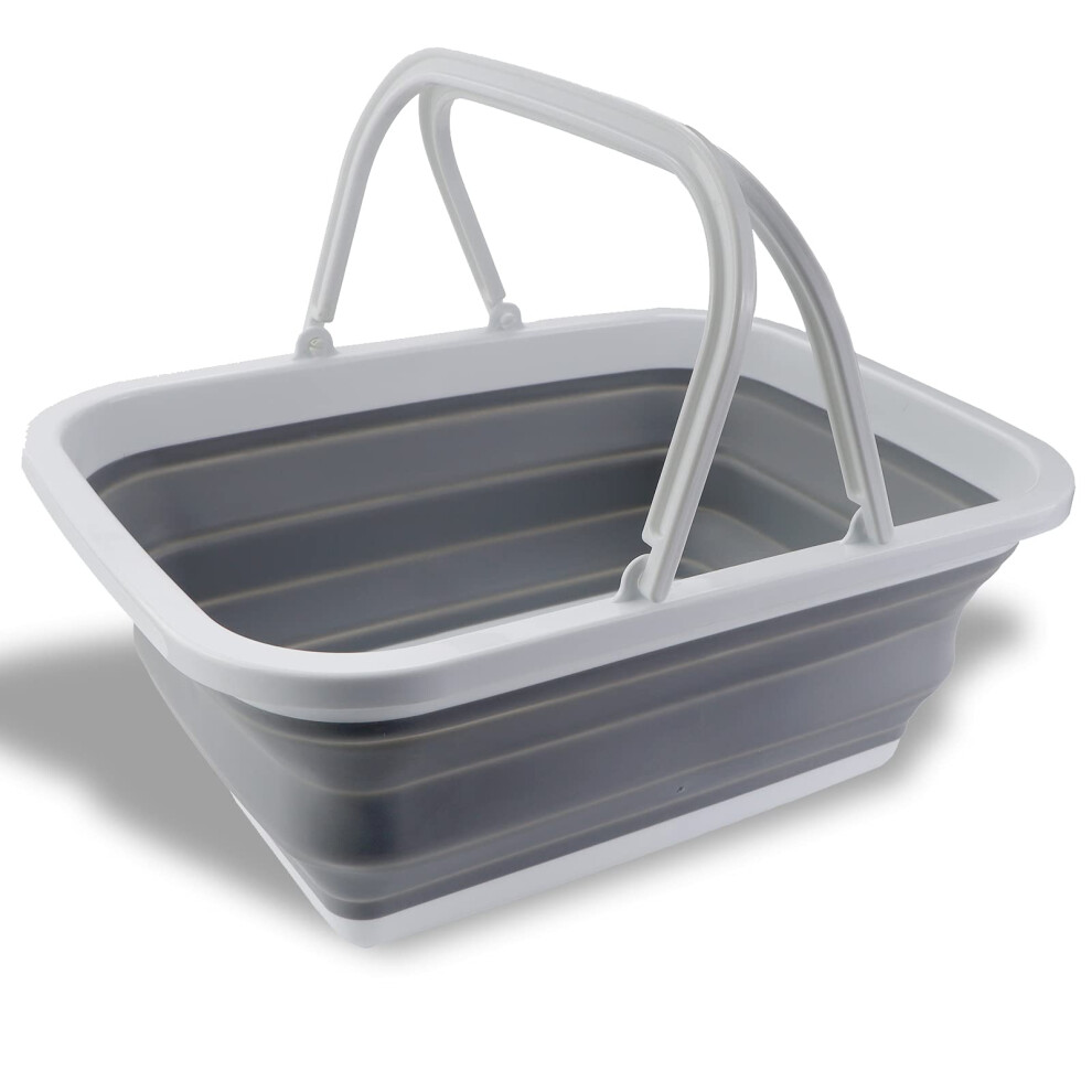 5L Collapsible Washing Up Bowl - Folding Hand Wash Basin, Plastic M, Grey