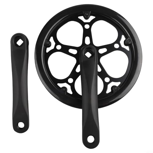 Shophubio Folding For Bike Crankset 52T with Guard Disc, 170mm Square Hole Aluminum Alloy Crank for Single Speed and Variable Speed Bicycles(Black)