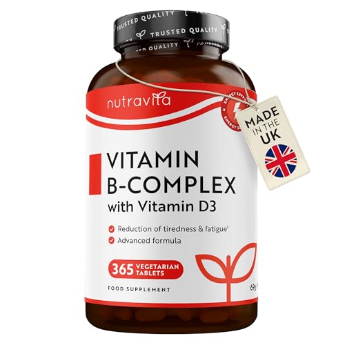 Vitamin B Complex High Potency - 1 Full Year Supply - 8 Vitamins B1-B2-B3-B5-B6-B12, Biotin, Folic Acid & VIT D3 in 1 High Strength Micro Tablet - Reduction of Tiredness - Made in The UK by Nutravita