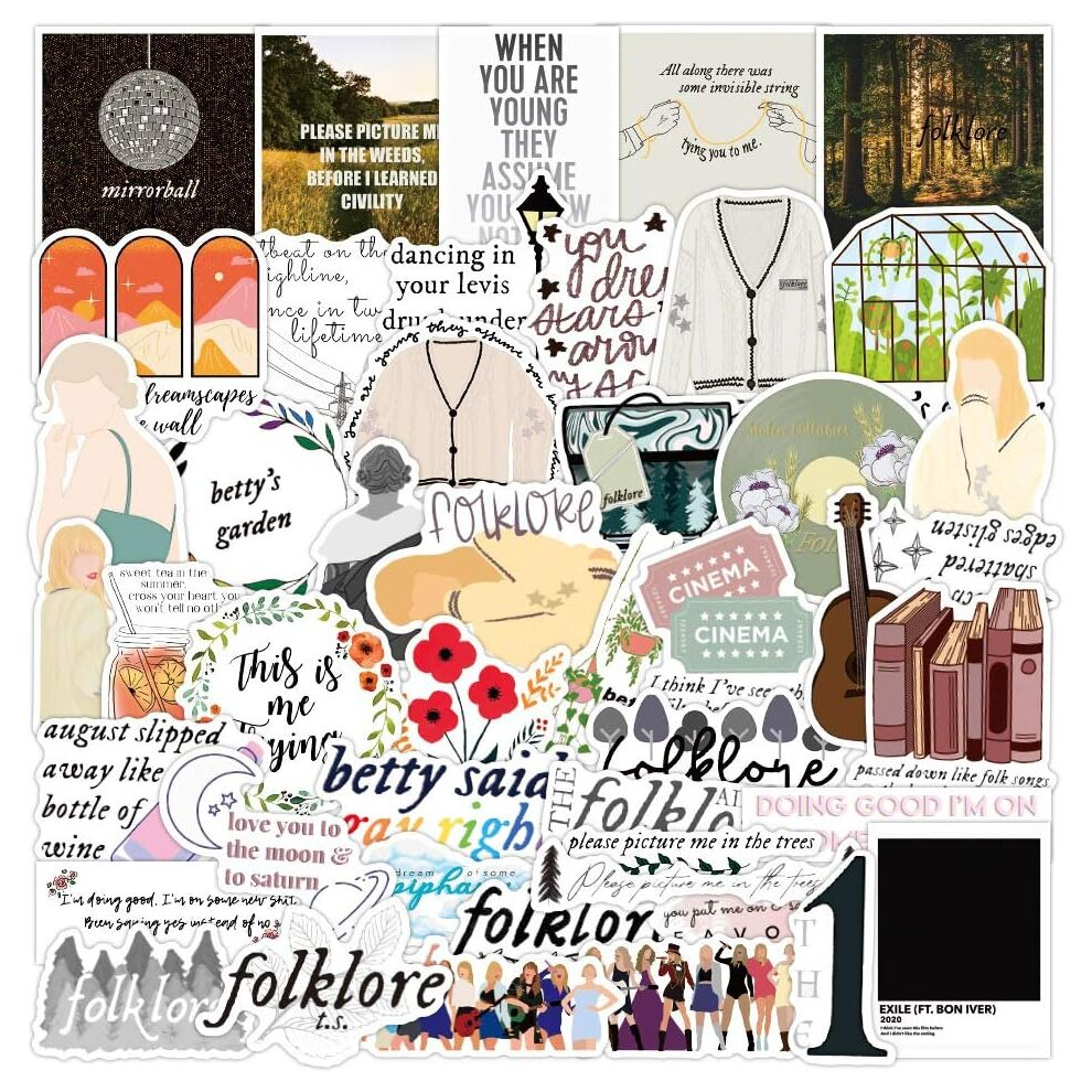 50PCS Folklore Stickers , Folklore Stickers Water Bottles,LuggageSkateboardPhone CaseWaterproof Vinyl Stickers for Adults, Teens, Boys, Girls.