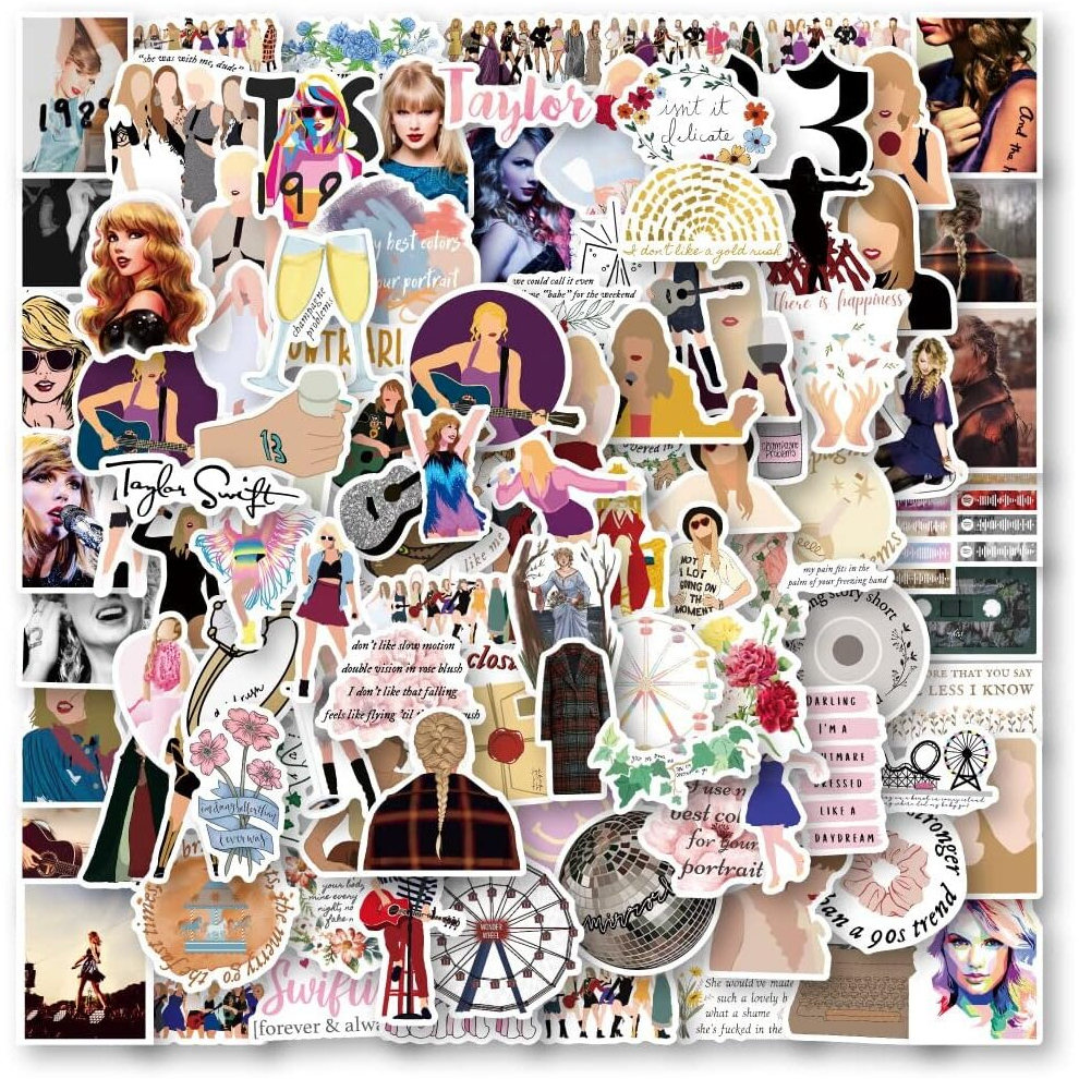 Singer Stickers 100Pcs Pop,Album Folklore and Evermore Red Stickers Waterproof Vinyl Stickers for Laptop Water Bottle Bumper Luggage Skateboard Gift