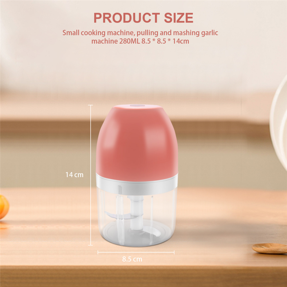 Electric Garlic Machine Chopper,USB Food Meat Wireless Processor Onion Blenders Grinder Slicer 280ML,Pink