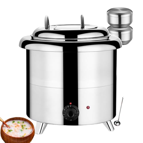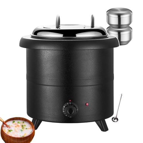 FBSHAD Countertop Soup Warmer Electric Buffet Food Warmer 400W | Food Warming Pot with 35-80℃ Temperature Control | Buffet Heater for Keep Porridge Warm (w/2 Rice Bowl & 1 Soup Spoon), Black