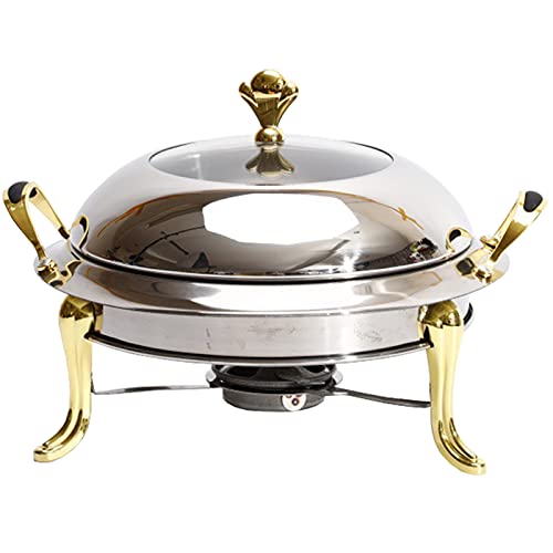 FBSHAD Full Size Round Buffet Stainless Steel Hot Pot Dinner Buffet Warmer Set with Visible Lid, Food Plate and Fuel Rack, Gold,Gold(Gold)