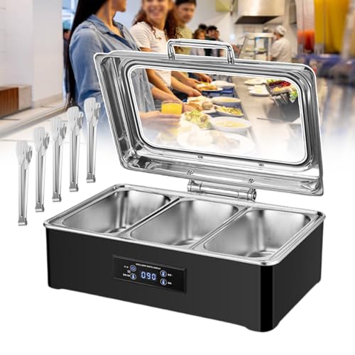 YIGECHENXIN PC Stainless Steel Luxury Food Warmer 600W Upgraded Roll Top Electric Chafing Dish Buffet Set With independent power supply and non-slip mats for Birthday,Three