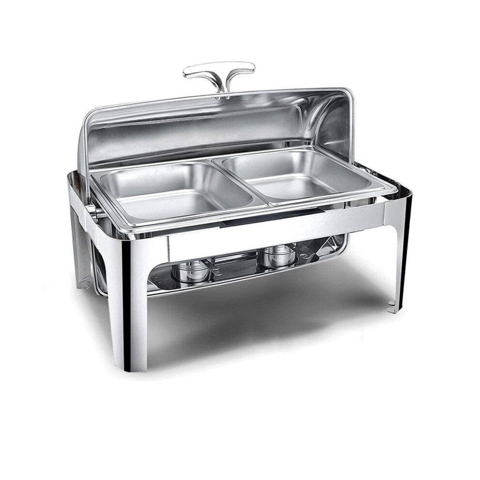 LVLDAWA 9L Roll Top Chafing Dish, Stainless Steel Buffet Food Warmer Set, With Food/Water Pan And Fuel Holders For Catered Events(9L-A)