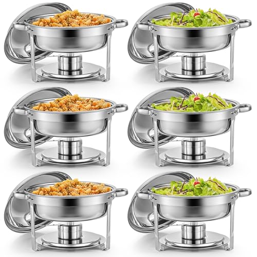 Wilprep Chafing Dishes Set of 6, 5L Stainless Steel Round Chafing Dish Buffet Set,Food Warmer Kit with Lids and Food Pans for Restaurant Catering Parties Weddings Picnics