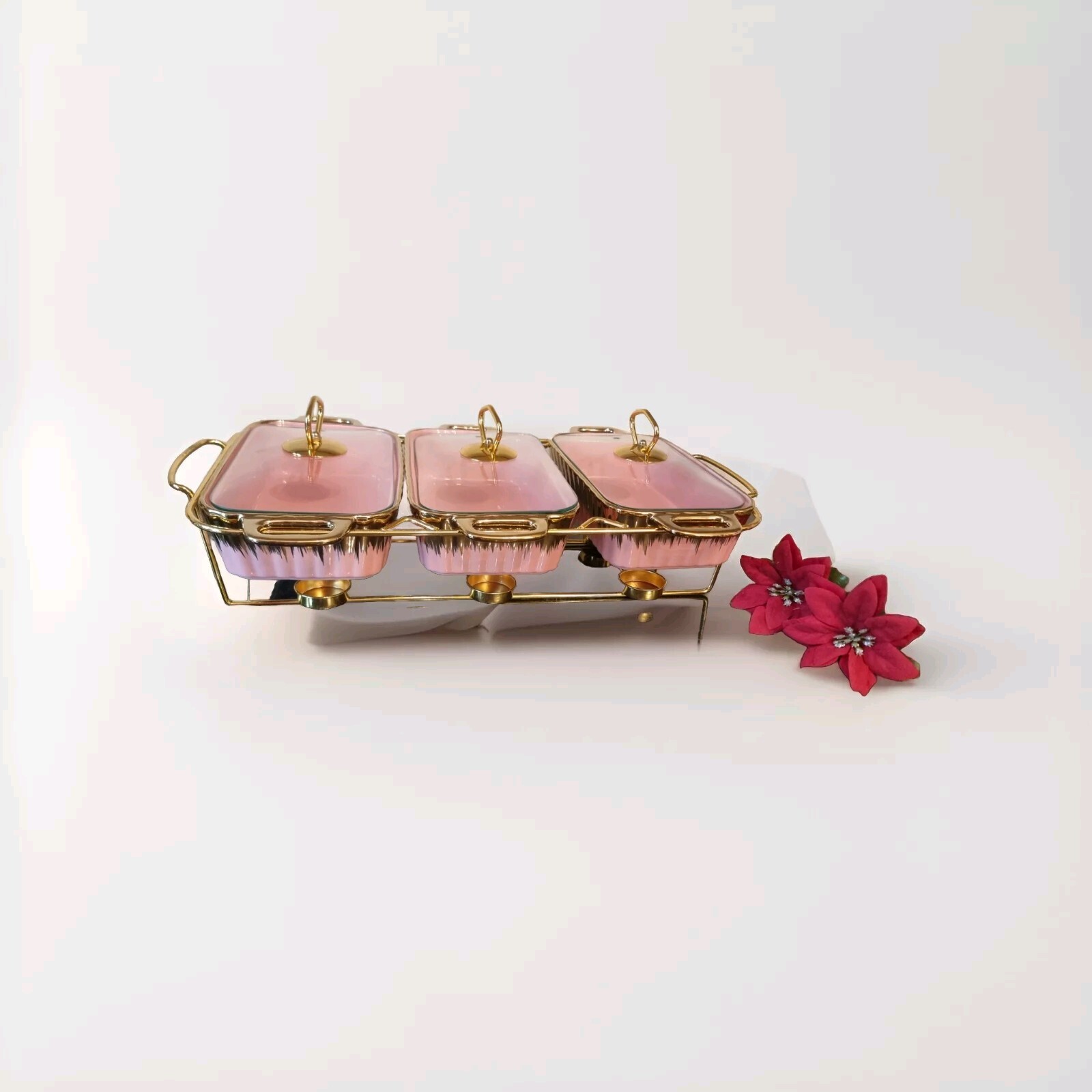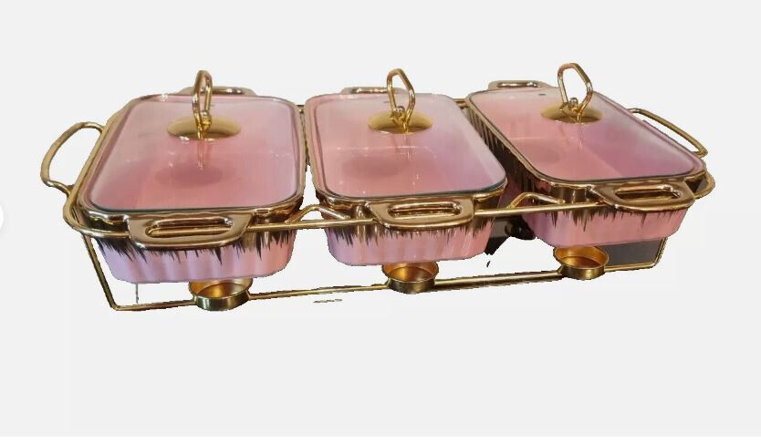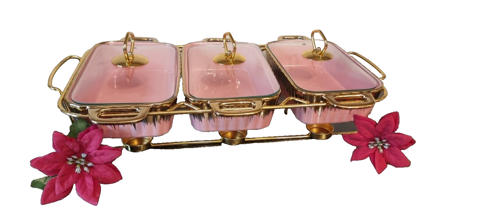 Chafing Dish Set Of 3 Pink Ceramic Buffet Food Warmer Party Luxury Gift