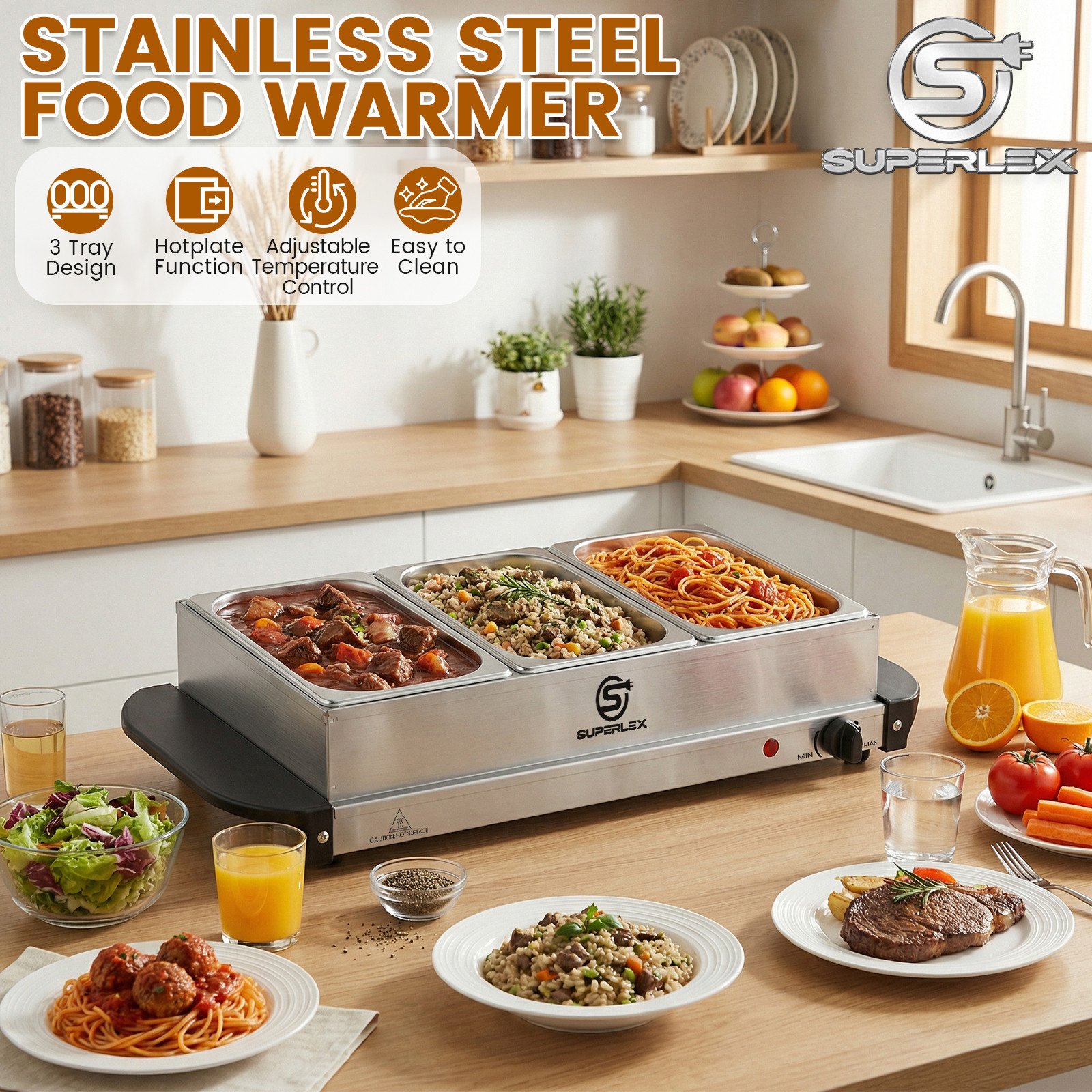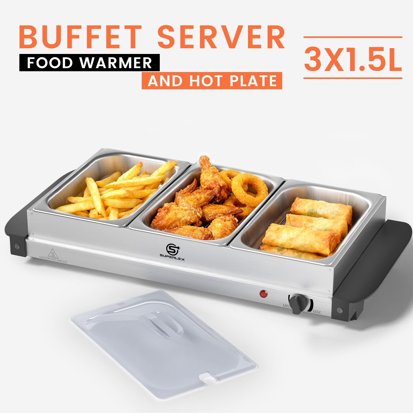SUPERLEX 4.5L Hot Plate Food Warmer Buffet Server Warming Tray Adjustable Temp