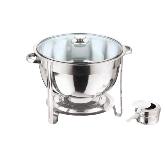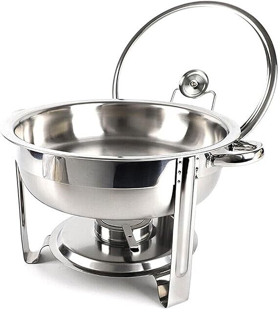 Stainless Steel 4.5L Round Chafing Dish Food Warmer Buffet Catering & Glass Lid
