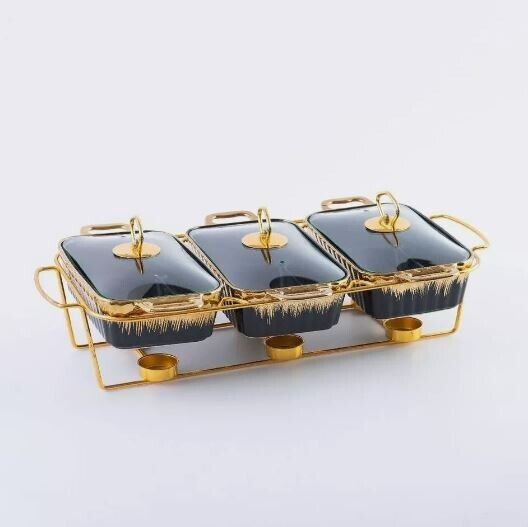 Luxury Chafing Dish Set Of 3 Black Ceramic Food Warmer Buffet Party Gift