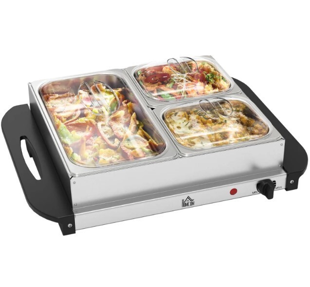 Homcom 4 Tray Electric Food Warmer Buffet Server With Plate Warmer Function, Cool Touch Handles, Adjustable Temperature, 300w
