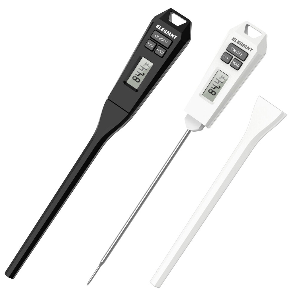 flintronic Food Thermometer, Digital Instant Read Meat Thermometer, High Accuracy Foldable Long Probe Food Cooking Thermometer with °F/°C, Auto On/Off Cooking Thermometer for Kitchen, BBQ, Milk, White