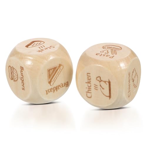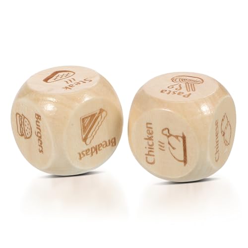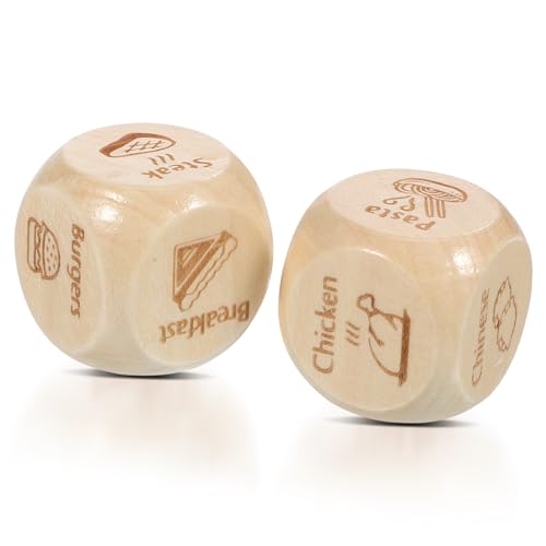 Gogogmee 2 Pcs Food Decision Maker Wooden Dinner Idea Cubes with Food Patterns and Words Portable Fast Meal Planning Tool for and Travel