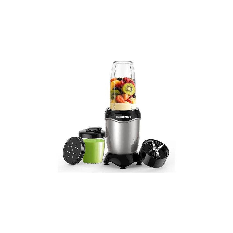 Food Blender, TECKNET 600W High Speed Food Processor with 2 Portable Travel Cups, 7-Pics Food Mixer, Multi-Functional Blender for Shakes, Smoothies,