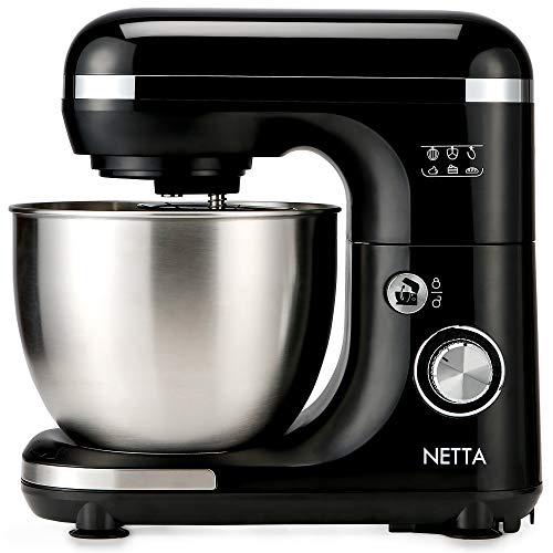 NETTA Stand Mixer 600W Tilt Head Food Mixer - Including Dough Hook, Whisk and Beater - 7 Different Speed Settings, 5L Stainless Steel Mixing Bowl - Includes Splash Guard