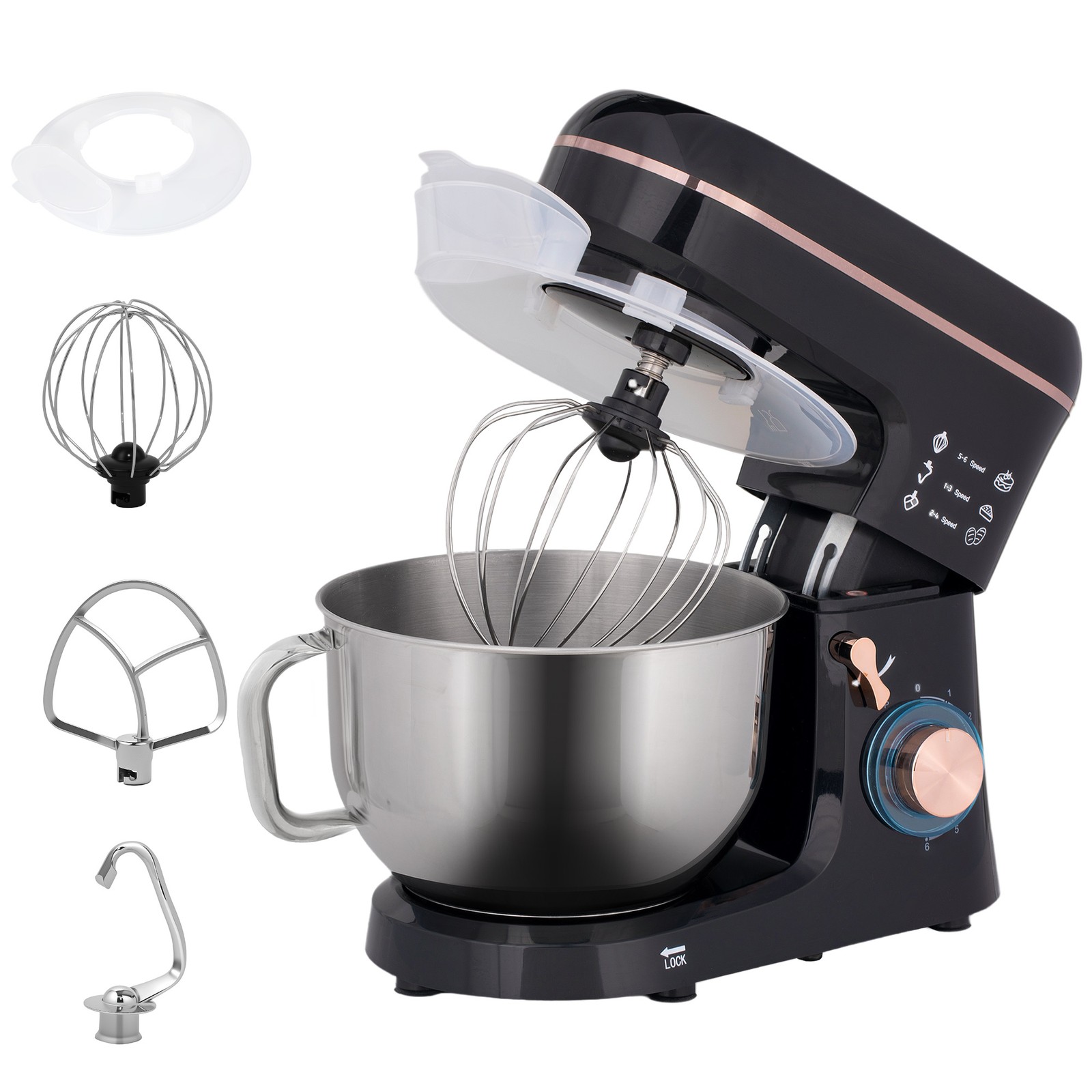 HOMCOM Electric Stand Mixer, 5L Food Mixer with Dough Hook, Whisk, Black