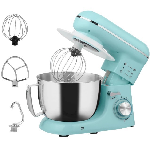HOMCOM Electric Stand Mixer, 4.5L Food Mixer with Dough Hook, Whisk, Blue