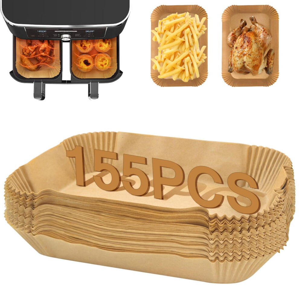 FEEZOM 155PC Ninja Air Fryer Liners Disposable, Air Fryer Paper Liners for Ninja Air Fryer Dual, Airfryer Food Grade Accessories for AF300UK AF400UK,