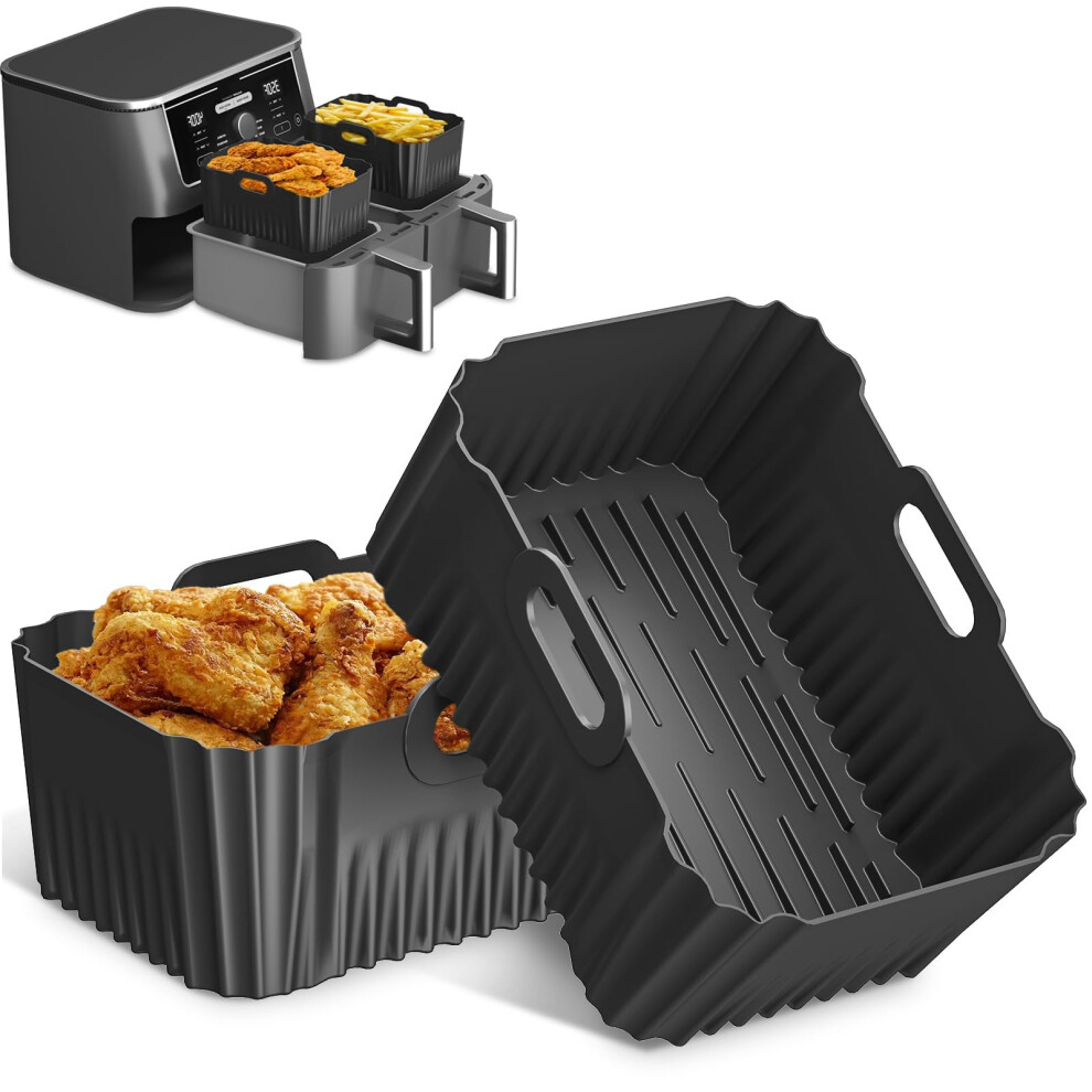 2PCS Silicone Air Fryer Liners, Food Grade Silicone Liners for Ninja, Reusable Air Fryer Accessories Custom Made for Ninja AF400UK AF451UK & DZ400UK 9.5L