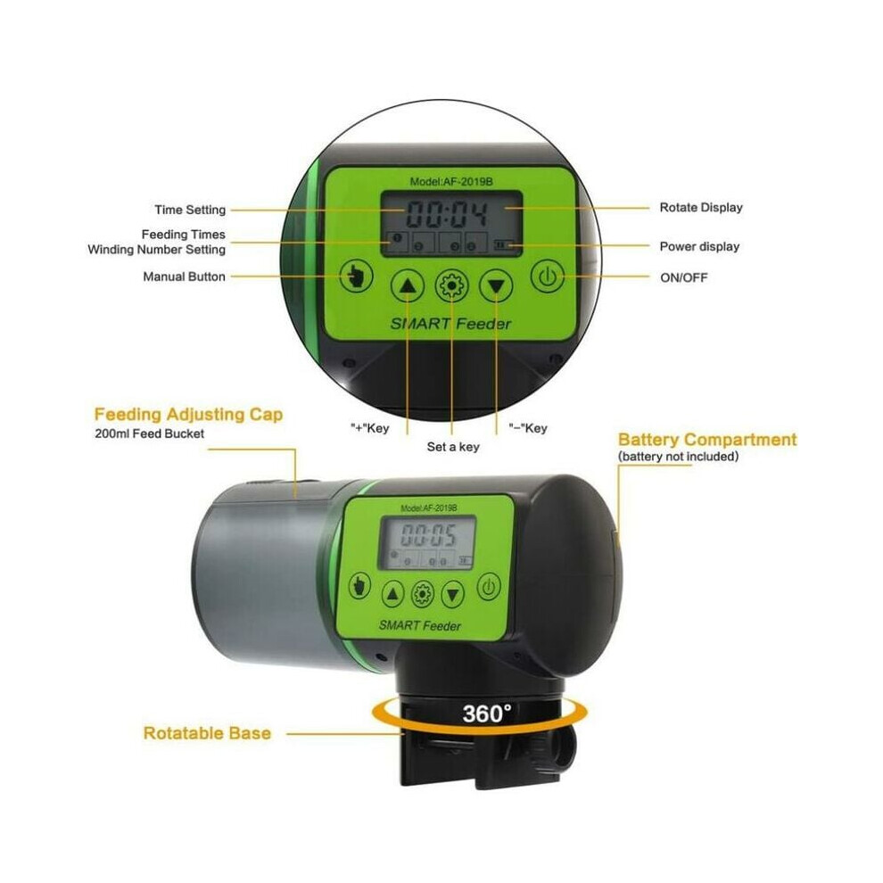 Aquarium Automatic Fish Feeder: Programmable Feed Timer, Moisture-Proof Design Ensures Fresh Food, Suitable For Various Flakes And Pellets, 200ml